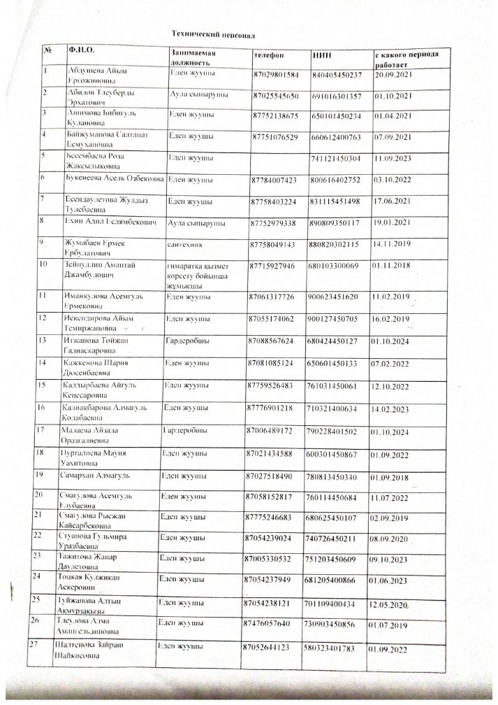 әл-Фараби атындағы ІТ лицейінің қызыметкерлерінің сапалық тізімі